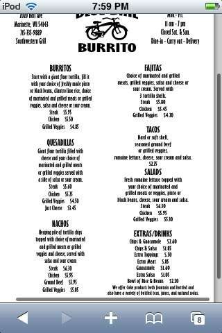Blue Bike Burrito Marinette Menu Prices Restaurant Reviews