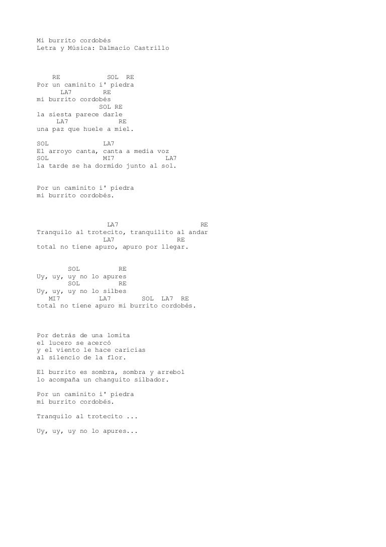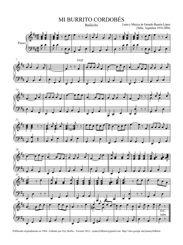 Mi Burrito Cordobes Partitura Y Letra Ocio Tecnologia General