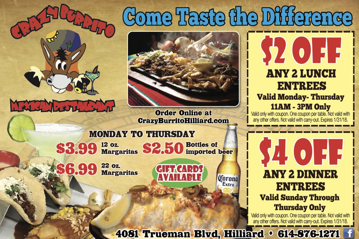 Crazy Burrito Of Hilliard Home Hilliard Ohio Menu Prices