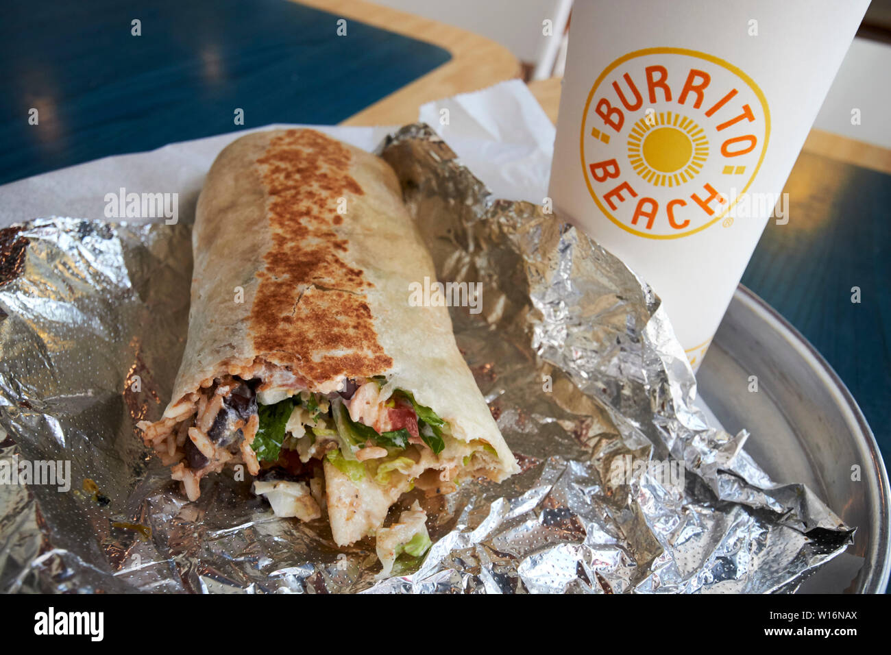 Burrito Beach Burrito In Silver Paper With Drink Meal Chicago Il