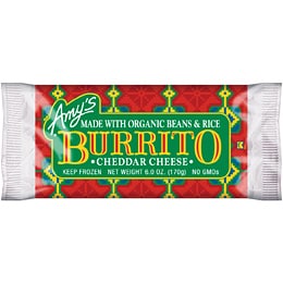Amy S Frozen Bean Cheddar Cheese Burrito Non Gmo 6 Ounce