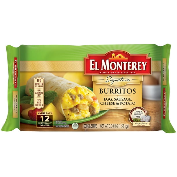 El Monterey Signature Egg Sausage Cheese Potato Breakfast Burritos
