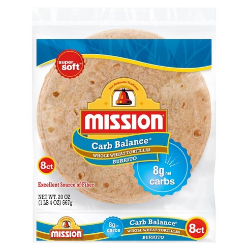 Mission Flour 8ct 20oz Burrito Carb Balance Whole Wheat Tortillas