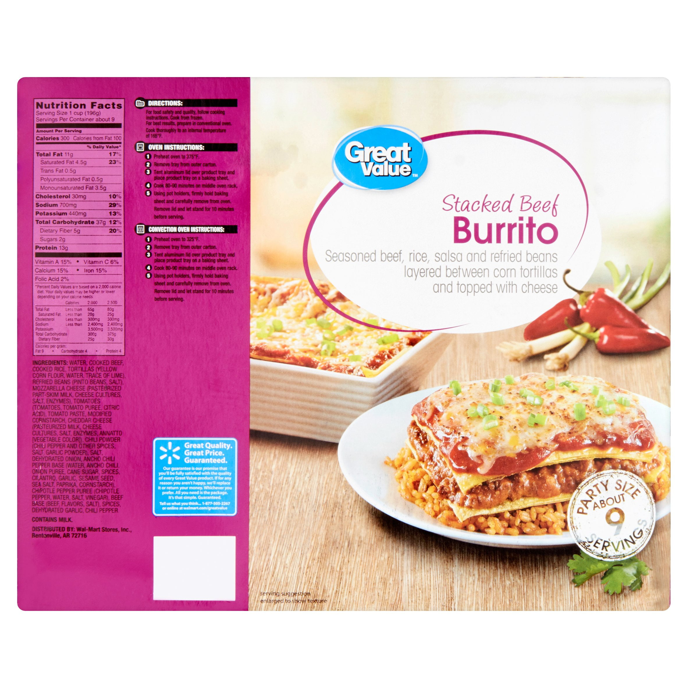 Great value stacked beef burrito family size is about to become your familys favorite weeknight dinner. 1 tray 340g.