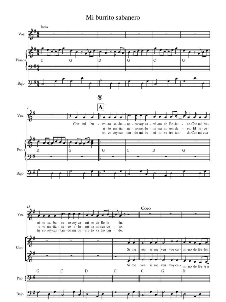 Partitura De La Cancion Mi Burrito Sabanero Villancico