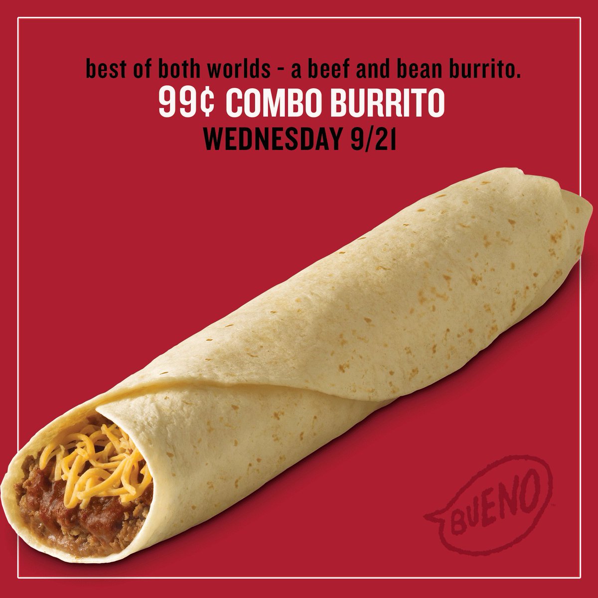 Taco Bueno On Twitter Oklahoma Buenoheads This One S For You 99 Combo Burrito Wed 9 21 Limit 5 Reg Price 2 49 Sales Tax Not Included Https T Co Dtnokqz5q2